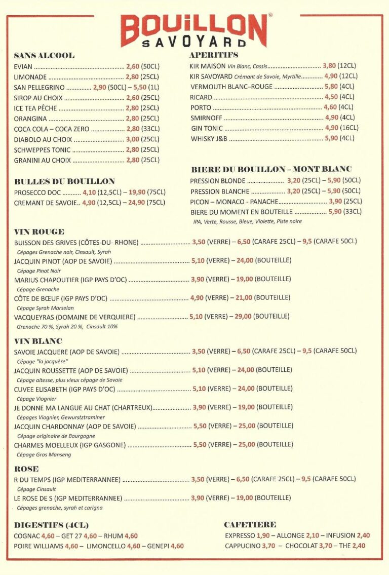Au Bouillon Savoyard, nous réinventons l’esprit des grands bouillons parisiens du XIXᵉ siècle en lui donnant une saveur alpine. Notre maison propose une cuisine généreuse et réconfortante, inspirée des traditions françaises, servie dans une ambiance conviviale et chaleureuse. Ici, les plats typiques et authentiques se dégustent à prix accessibles, dans un décor rustique rappelant les chalets de montagne. Un lieu vivant, simple et accueillant, où l’on se retrouve pour partager le goût du terroir sans compromis entre qualité et prix.